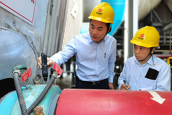 圖為運(yùn)行人員測量鍋爐高壓輔機(jī)振動情況
