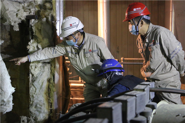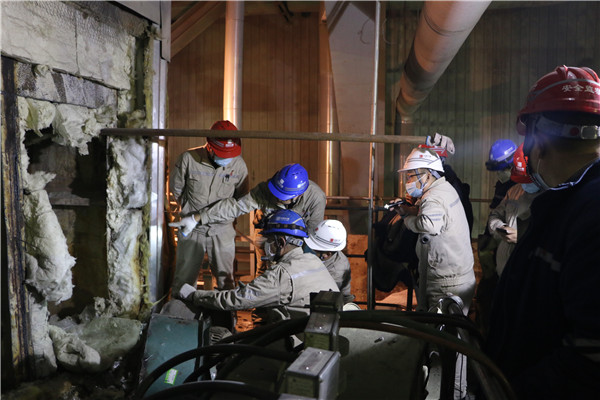 此次消缺期間室外最低氣溫達(dá)到零下20度左右,防寒防凍無疑是消缺工作的重中之重,長山廠及時切換供熱方式,利用化廠備用熱源為家屬區(qū)供熱,同時也為防寒防凍工作、機(jī)組順利啟動提供可靠保證。在此期間,各單位各負(fù)其責(zé),全員行動,全面開展防寒防凍工作。發(fā)電部作為主體責(zé)任部門,從主任到單元長,從值班員到巡檢員,明確區(qū)域,認(rèn)真排查,每小時測量廠房所有區(qū)域溫度,同時對門窗封閉、室外管路保溫等防寒防凍措施進(jìn)行再次確認(rèn);設(shè)備部一方面制定方案組織相關(guān)單位消缺,一方面全面安排部署極寒天氣下的防寒防凍工作;各車間(分場)在生產(chǎn)廠房各層重要部位設(shè)置炭火爐,對熱控表管表計(jì)、電氣電子間盤柜、氨區(qū)管路進(jìn)行檢查,增加伴熱帶,設(shè)置值班人員監(jiān)測環(huán)境溫度,全力以赴確保防寒防凍工作萬無一失。消缺期間,行政事務(wù)部積極做好后勤保障工作,按時準(zhǔn)備盒飯送到現(xiàn)場,助力消缺工作順利完成。