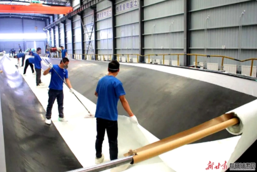 甘肅重通成飛新材料有限公司舉行CGI95.0A首支風(fēng)電葉片下線儀式。