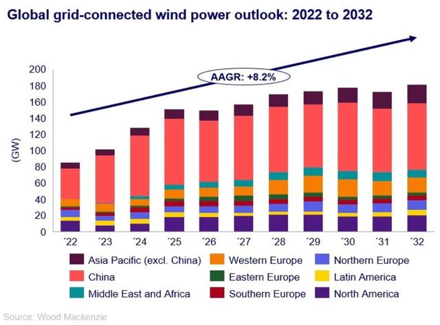 咨詢(xún)公司伍德麥肯茲(Wood Mackenzie)在本周二表示,由于美國(guó)海上風(fēng)電行業(yè)的財(cái)務(wù)困難,以及中國(guó)對(duì)于風(fēng)電項(xiàng)目的審批和裝機(jī)進(jìn)展緩慢,未來(lái)十年,全球風(fēng)電行業(yè)新增裝機(jī)容量將低于此前的預(yù)期。