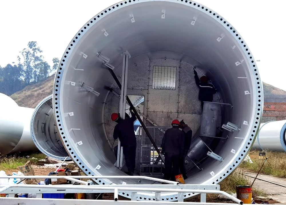 在云南藍(lán)天重工有限公司,工人們正在進(jìn)行風(fēng)力發(fā)電機(jī)塔筒內(nèi)附件安裝。“我們今年新增了一條生產(chǎn)線,并于7月正式投產(chǎn),可滿足單段100噸塔筒生產(chǎn)要求。今年,除了華寧,我們還接到了曲靖、文山等地的訂單。”該公司技術(shù)副總經(jīng)理周鵬翔說(shuō),“現(xiàn)在全國(guó)風(fēng)電產(chǎn)業(yè)趨勢(shì)向好,帶來(lái)了良好的市場(chǎng)前景,也帶來(lái)了更大的市場(chǎng)競(jìng)爭(zhēng)。接下來(lái),我們將充分發(fā)揮公司生產(chǎn)規(guī)模大、輻射面積廣的優(yōu)勢(shì),不斷提升產(chǎn)品競(jìng)爭(zhēng)力,逐步擴(kuò)大生產(chǎn)規(guī)模。”