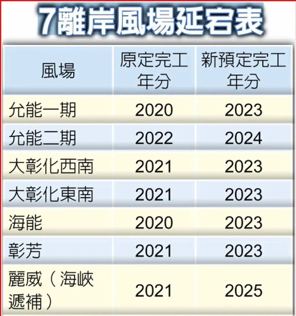 目前Formosa 2、大彰化、云林風電場均在申請延期。提交延期材料的截至日期為1月底,延期時間是否合理,需根據(jù)提交的材料而定。若延期理由不適用,還將面臨階段式處罰。