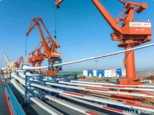 據(jù)了解,該批裝船風(fēng)葉型號為7.5兆瓦級別,長度100米,具備葉片長、捕風(fēng)力強(qiáng)等特點(diǎn)。船舶到港前,在煙臺港生產(chǎn)業(yè)務(wù)部統(tǒng)一指揮下,蓬萊港公司科學(xué)調(diào)配生產(chǎn)要素,對三層風(fēng)葉吊裝安全方案進(jìn)行實(shí)戰(zhàn)化桌面推演,全面打通集港、堆存、裝船、加固全鏈條綠色通道。