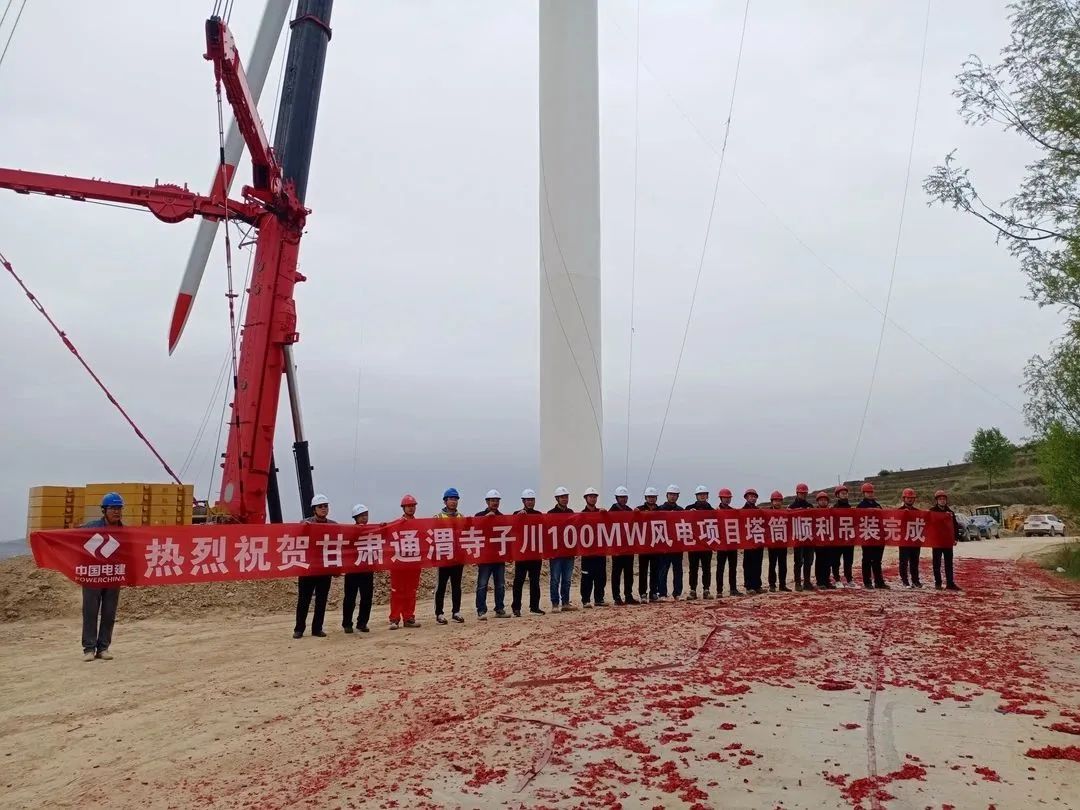5月25日,由中國(guó)水電四局酒泉新能源公司承制的甘肅通渭寺子川100兆瓦風(fēng)電項(xiàng)目順利完成吊裝。