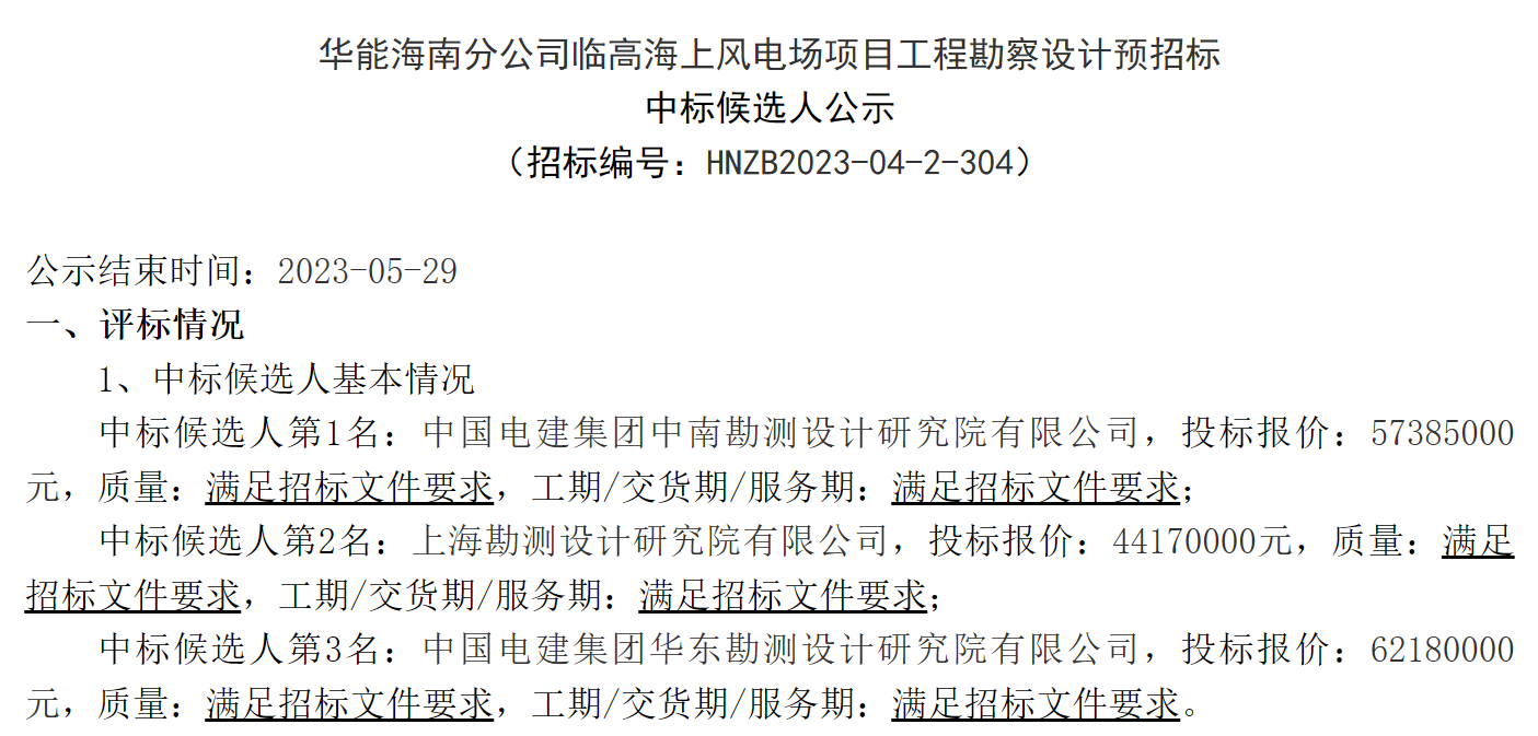 公告顯示,第一中標(biāo)候選人:中國電建集團中南勘測設(shè)計研究院有限公司,投標(biāo)報價:57385000元。第二中標(biāo)候選人:上??睖y設(shè)計研究院有限公司,投標(biāo)報價:44170000元。第三中標(biāo)候選人:中國電建集團華東勘測設(shè)計研究院有限公司,投標(biāo)報價:62180000元。