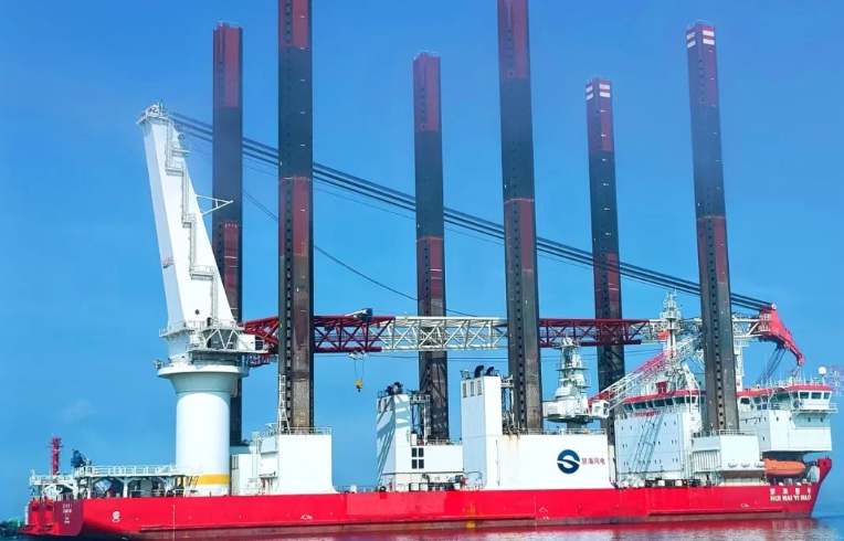 據(jù)了解,“慧海1號”輪是2021年從國外進(jìn)口的一條具有6條樁腿的自升自航風(fēng)電安裝船,船長138.55米,船寬40.8米,型深10米,配備1000噸主吊機(jī)。該平臺配備先進(jìn)的DP2定位系統(tǒng),可同時搭載3臺風(fēng)電設(shè)備進(jìn)行作業(yè),具有作業(yè)效率高、工作水深大、抗風(fēng)浪能力強(qiáng)等特點(diǎn)。