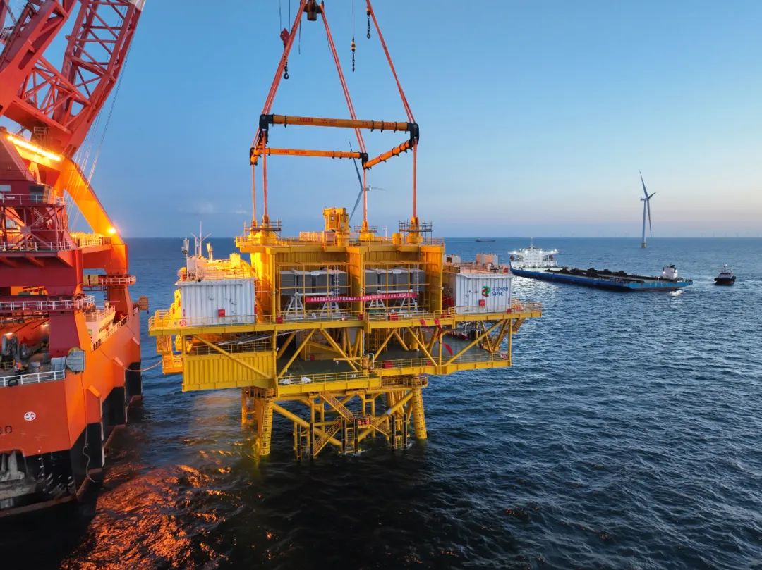 我國(guó)最大模塊化海上升壓站吊裝就位