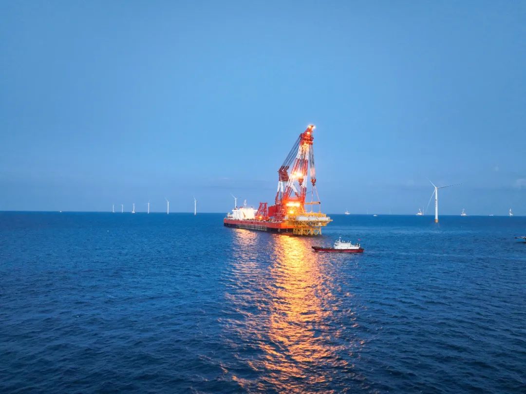 8月23日18時(shí)58分,國(guó)家電投山東能源投資建設(shè)的山東半島南U1場(chǎng)址海上風(fēng)電項(xiàng)目海上升壓站上部組塊與導(dǎo)管架精準(zhǔn)對(duì)接,標(biāo)志著國(guó)內(nèi)單體容量最大、集電線路電壓等級(jí)最高的模塊化預(yù)裝式海上升壓站吊裝順利完成。