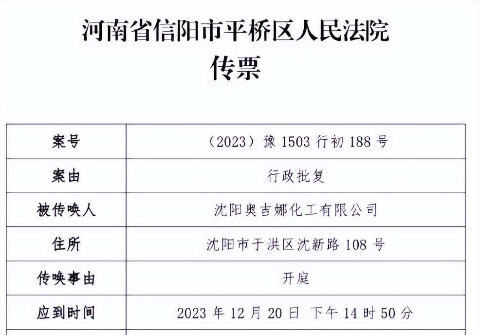 2023年12月1日,中國(guó)風(fēng)電潤(rùn)滑油龍頭企業(yè)沈陽(yáng)奧吉娜化工有限公司(下簡(jiǎn)稱(chēng)奧吉娜公司)收到河南省信陽(yáng)市平橋區(qū)人民法院開(kāi)庭傳票,奧吉娜公司訴信陽(yáng)市生態(tài)環(huán)境局和第三人華陽(yáng)長(zhǎng)青投資有限公司行政訴訟案,將于2023年12月20日14時(shí)50分開(kāi)庭審理。屆時(shí),這起風(fēng)電潤(rùn)滑油央企招投標(biāo)“民告官”第一案結(jié)果如何,讓我們拭目以待。