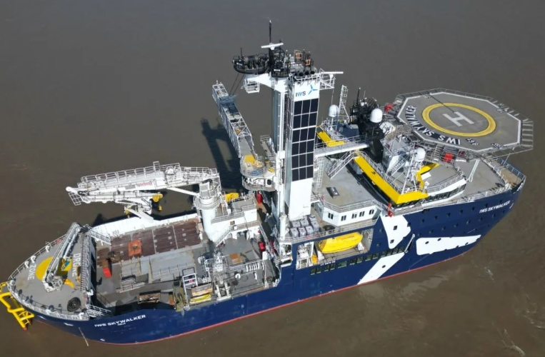 “IWS SKY WALKER”號總長90米,型寬19.6米,設(shè)計航速13節(jié),可為120人提供轉(zhuǎn)運和30天以上的海上生活及作業(yè)支持,采用柴電電力推進和直流母排配電系統(tǒng),靠泊及操縱性能優(yōu)異,可實現(xiàn)風場設(shè)備及備件的高效存儲和運輸。項目配備直升機甲板、工作艇(子船)及艉部CTV接駁平臺,人員運輸及調(diào)配效率極高。同時還配備DP2動力定位系統(tǒng)及3D波浪補償傳送舷梯及3D波浪補償主吊,可實現(xiàn)嚴苛海況下的人員轉(zhuǎn)運及風場維護作業(yè),安全性能及工作效率遠高于同類船舶。
