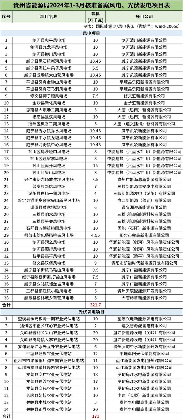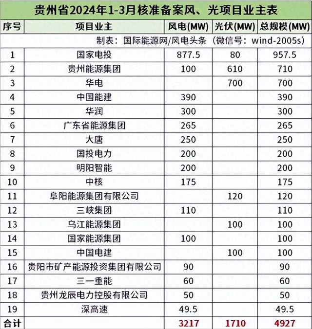 具體來看,這52個項目中,風(fēng)電項目占據(jù)了主要部分,共有38個,總?cè)萘窟_3217MW。而光伏發(fā)電項目則有14個,總?cè)萘繛?710MW。這些項目不僅體現(xiàn)了貴州省在可再生能源領(lǐng)域的堅定步伐,也預(yù)示著該省在清潔能源發(fā)展方面的巨大潛力。