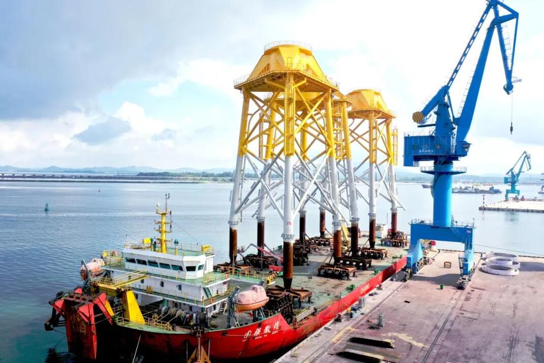 7月4日,由中國水電四局陽江公司承建的廣西防城港海上風電示范項目A場址三套導管架順利裝船交付,為該項目建設邁出了堅實的一步。
