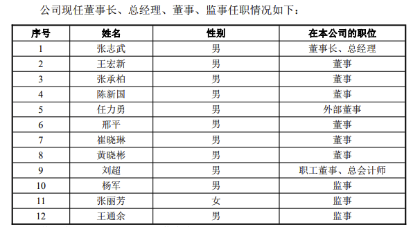 經(jīng)研究決定,聘任張志武擔(dān)任公司董事長、總經(jīng)理,聘任王宏新、陳新國、崔曉琳、黃曉彬、劉超擔(dān)任公司董事,聘任楊軍、張麗芳、王通余擔(dān)任公司監(jiān)事;陳遂卸任董事長,李亦倫卸任董事、總經(jīng)理,夏林泉卸任外部董事,王宏新卸任監(jiān)事。