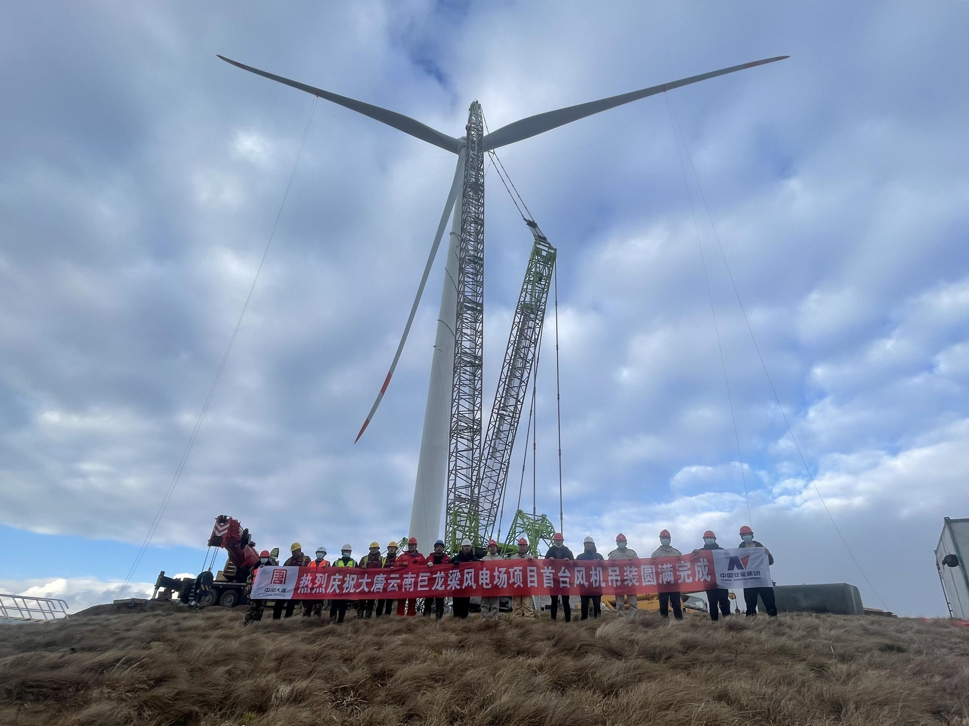 12月20日下午17時(shí),在中國安能二局承建的云南巨龍梁風(fēng)電項(xiàng)目(一期)工程建設(shè)現(xiàn)場(chǎng),隨著最后一顆螺栓安裝完畢,一臺(tái)全國單機(jī)容量最大的6.7兆瓦高原山地風(fēng)機(jī)成功吊裝,葉輪直徑達(dá)到了191米,成功刷新了世界高原山地風(fēng)機(jī)建設(shè)記錄,是名副其實(shí)的風(fēng)電巨人。