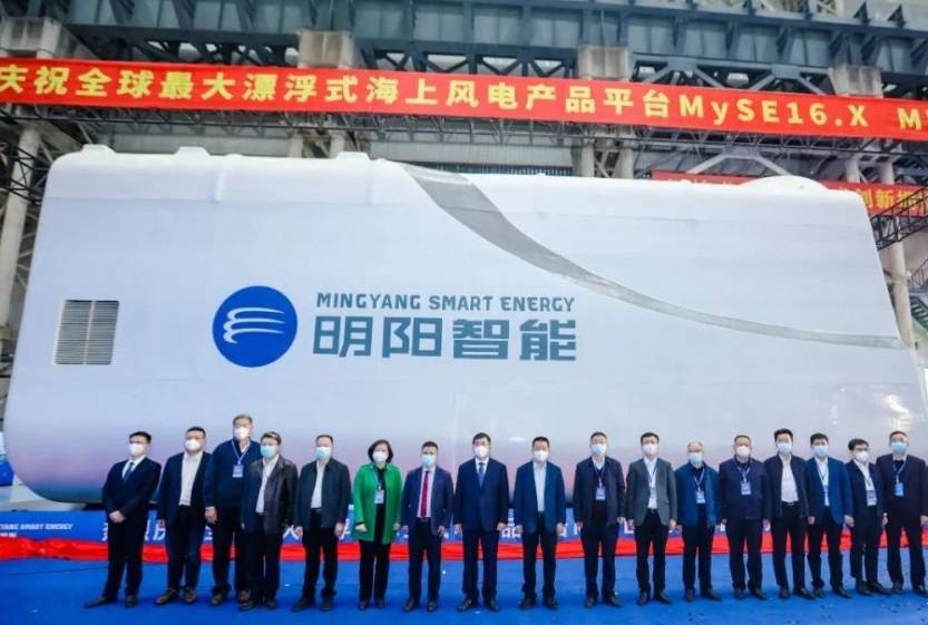 1月10日,明陽智能正式發(fā)布18兆瓦全球最大海上風電機組——MySE18.X-28X,并下線全球最大漂浮式海上風電機組MySE16.X-260。