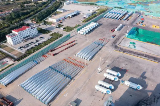 乳山市乳山港海上風(fēng)電設(shè)備陸地中轉(zhuǎn)現(xiàn)場圖(央廣網(wǎng)發(fā) 段文奇供圖)