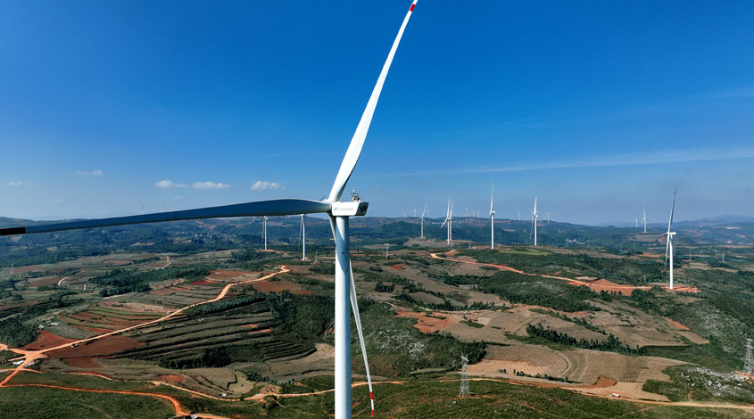 我國單機容量最大山地風電項目三峽能源云南彌勒西風電項目。