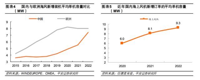 海上風(fēng)機方面,整體看,歐美單機容量14-15MW、葉輪直徑236米左右的大兆瓦海上新品有望于2024-2025年開始批量交付。