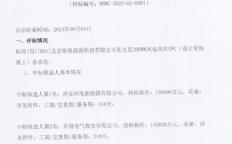 公告顯示,第一中標候選人:西安西電新能源有限公司,投標報價: 150000萬元。第二中標候選人:許繼電氣股份有限公司,投標報價: 145830萬元。第三中標候選人:中國能源建設集團陜西省電力設計院有限公司,投標報價:155492萬元。