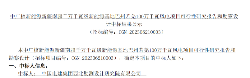 公告顯示,中國電建集團(tuán)西北勘測設(shè)計(jì)研究院有限公司成功中標(biāo)該項(xiàng)目,中標(biāo)價(jià)格為14,500,000.00元。