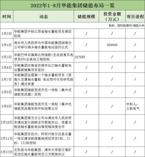 2022年,華能集團(tuán)全國第一個(gè)抽水蓄能項(xiàng)目《恩施大龍?zhí)冻樗钅茈娬绢A(yù)可行性研究報(bào)告》通過審查;與湘鄉(xiāng)市、左權(quán)縣等地簽訂抽水蓄能項(xiàng)目合作協(xié)議,儲(chǔ)能項(xiàng)目招標(biāo)4個(gè),涉及儲(chǔ)能變流器、光蓄一體化等方面。