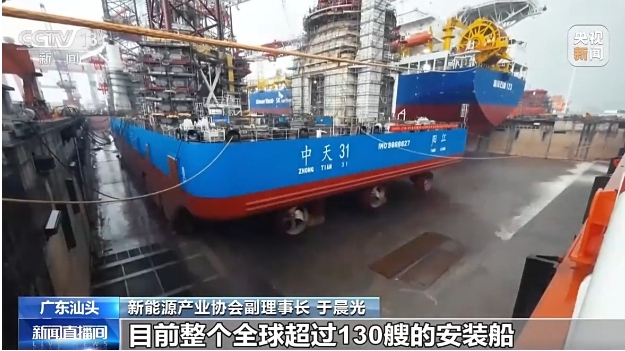 新能源產(chǎn)業(yè)協(xié)會(huì)副理事長(zhǎng) 于晨光:海上風(fēng)電安裝船作為整個(gè)海上風(fēng)電安裝效率提升就是最重要的一個(gè)船機(jī)。目前整個(gè)全球超過(guò)130艘的安裝船,中國(guó)造超過(guò)100艘,也就占了這80%以上的這個(gè)份額。目前高性能的安裝船需求訂單已經(jīng)排到2028年,所以其實(shí)中國(guó)的這個(gè)安裝船的市場(chǎng)可以走向歐美。