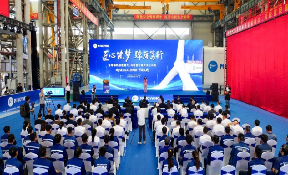 12月12日,明陽(yáng)智能MySE18.X-20MW海上風(fēng)電機(jī)組下線(xiàn)儀式在明陽(yáng)智能汕尾海上高端裝備制造基地隆重舉行。該機(jī)組是目前全球已下線(xiàn)單機(jī)容量最大、風(fēng)輪直徑最大的海上機(jī)組,其成功下線(xiàn)是我國(guó)海上風(fēng)電發(fā)展的又一里程碑,是明陽(yáng)作為海上風(fēng)電行業(yè)領(lǐng)導(dǎo)者積極推動(dòng)海上風(fēng)電平價(jià)上網(wǎng)、布局深遠(yuǎn)海發(fā)展的重要舉措,代表我國(guó)已具備超大型海上風(fēng)電機(jī)組及其關(guān)鍵部件自主研發(fā)和制造能力。