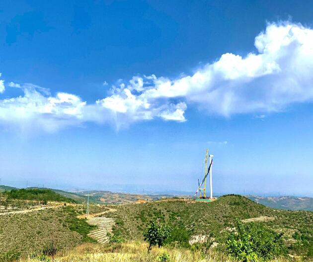 槐花香時(shí)麗日晴,風(fēng)起平定山光新。6月6日,由中國(guó)能建投資建設(shè)、山西院總承包、山西電建承建的山西平定100兆瓦風(fēng)電項(xiàng)目順首臺(tái)風(fēng)機(jī)吊裝任務(wù)完成。這是一次非同尋常的吊裝。平定風(fēng)電項(xiàng)目建設(shè)容量100兆瓦,安裝40臺(tái)海裝2.5兆瓦風(fēng)機(jī),機(jī)位大多分布在風(fēng)場(chǎng)各獨(dú)立山頭上,施工區(qū)域海拔高、范圍廣、吊裝難度大。
