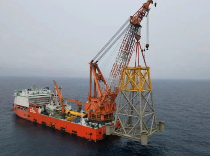 作為青洲四升壓站項目的核心根基,此次完工的導(dǎo)管架主體高66.1米,重2920噸,基礎(chǔ)樁直徑4.3米,長94~97米,單根最重570噸,水下沉樁基礎(chǔ)施工采用了直徑4.3米,長度40.5米的送樁器,打破了水下施工液壓打樁錘的限制,拓寬了現(xiàn)有施工裝備的局限。