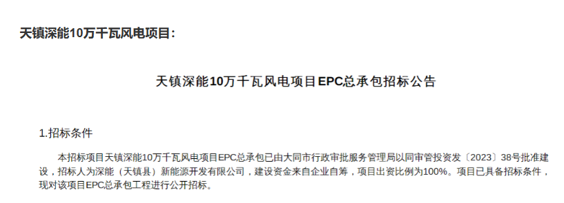天鎮(zhèn)深能10萬千瓦風(fēng)電項目: