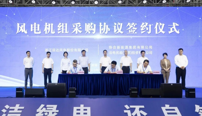 與會(huì)領(lǐng)導(dǎo)和嘉賓還參觀了永州風(fēng)電產(chǎn)業(yè)園生產(chǎn)線,出席了由永州經(jīng)開區(qū)負(fù)責(zé)統(tǒng)籌、運(yùn)達(dá)股份承辦的永州風(fēng)電產(chǎn)業(yè)與項(xiàng)目融合發(fā)展推進(jìn)會(huì)。運(yùn)達(dá)股份與協(xié)合新能源、法電優(yōu)能成功簽約風(fēng)電機(jī)組采購(gòu)意向書。