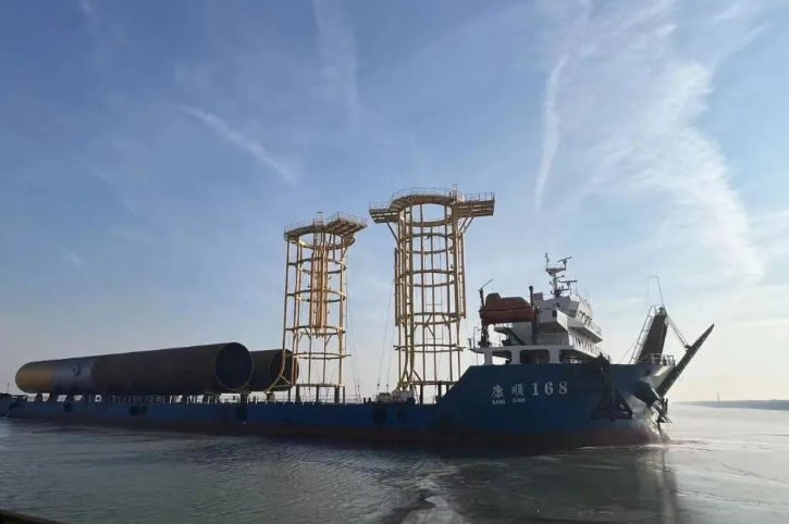 近日,由中國水電四局福清公司曹妃甸基地制作的山東能源渤中海上風電G場址工程單樁制作項目首批套籠附屬構(gòu)件順利裝船發(fā)貨。