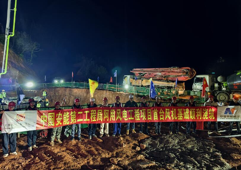 中國電力網(wǎng)訊(通訊員徐迎華、張澤華報(bào)道) 日前,隨著最后一車混凝土澆入基礎(chǔ),由中國安能二局承建的云南阿用風(fēng)電項(xiàng)目首臺(tái)風(fēng)機(jī)基礎(chǔ)澆筑順利完成,標(biāo)志著項(xiàng)目進(jìn)入主體工程施工階段。