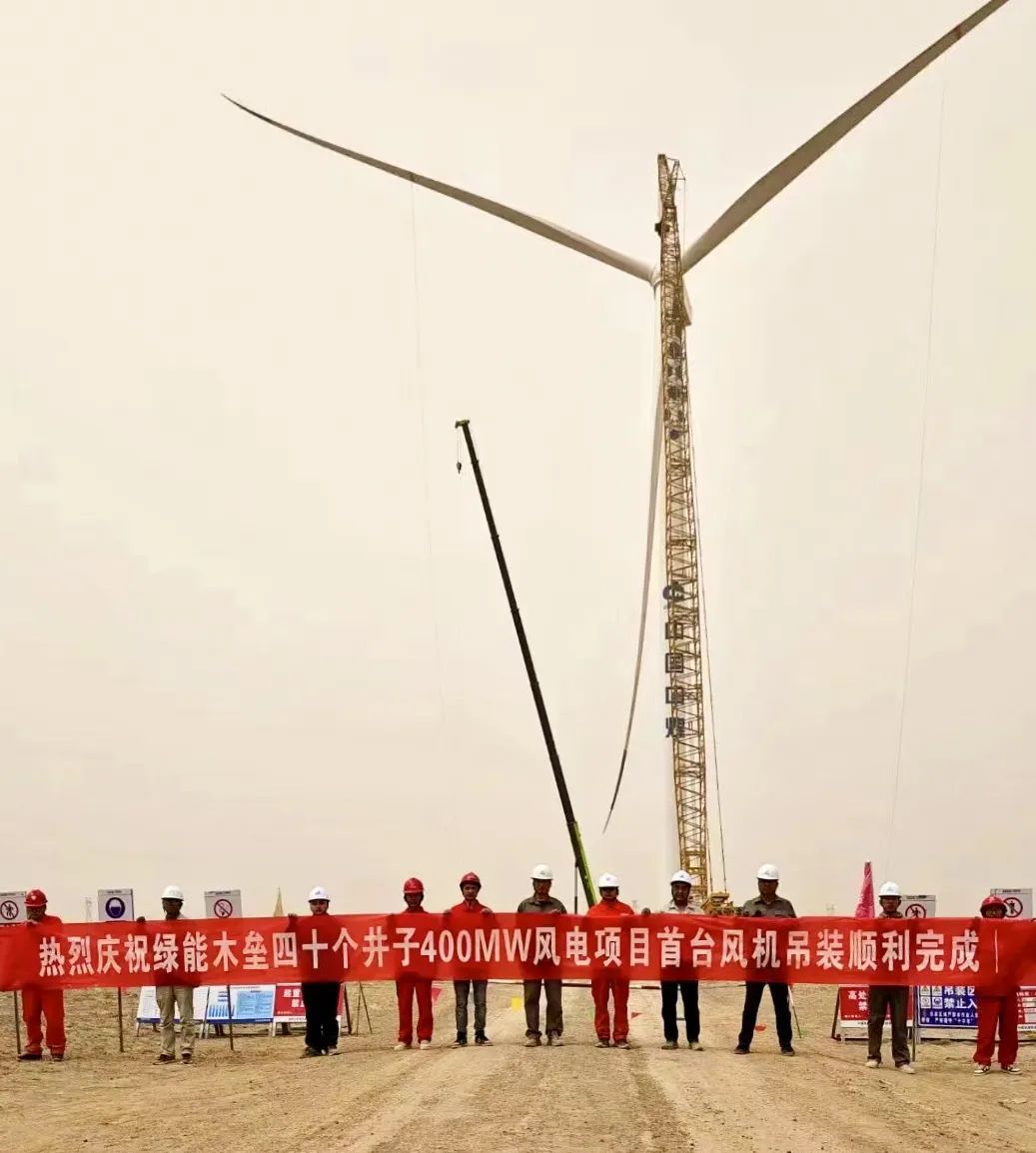 木壘四十個(gè)井子400兆瓦項(xiàng)目首臺(tái)機(jī)組吊裝