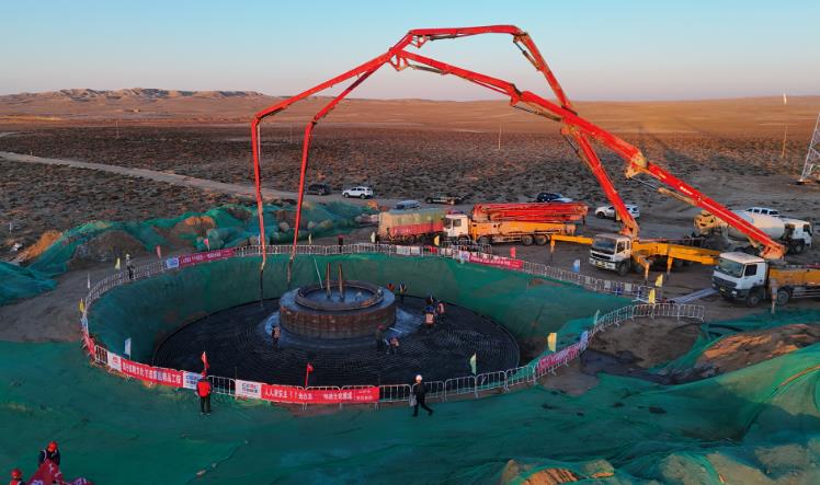 10月22日,中國能建建筑集團承建的內蒙古能源烏拉特后旗1000兆瓦風電項目風機基礎全部澆筑完成。