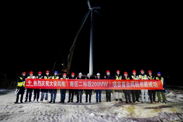 施工過(guò)程中,項(xiàng)目團(tuán)隊(duì)充分發(fā)揮“嚴(yán)、細(xì)、實(shí)”的工作作風(fēng),時(shí)刻關(guān)注天氣變化,克服了本年度首輪寒潮和大雪的影響,緊密協(xié)同、高效配合,通過(guò)科學(xué)施工組織、周密作業(yè)準(zhǔn)備、嚴(yán)格質(zhì)量檢驗(yàn),機(jī)艙和葉輪在連續(xù)施工40小時(shí)后成功對(duì)接,圓滿完成首臺(tái)風(fēng)機(jī)吊裝作業(yè)。
