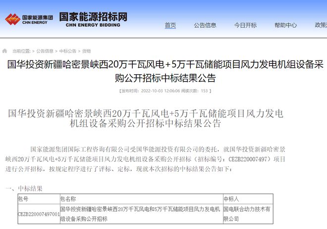 近日,國華投資新疆哈密景峽西20萬千瓦風(fēng)電+5萬千瓦儲能項目風(fēng)力發(fā)電機(jī)組設(shè)備采購公開招標(biāo)中標(biāo)結(jié)果公告,國電聯(lián)合動力中標(biāo),中標(biāo)價43580萬元,折合單價2179元/kW。