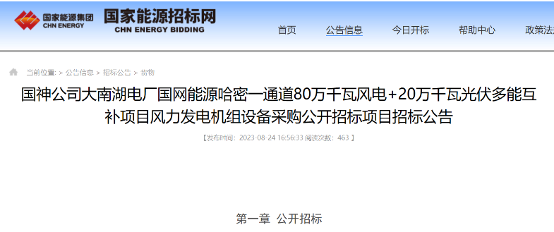 公告顯示,國網(wǎng)能源哈密一通道80萬千瓦風電+20萬千瓦光伏多能互補項目場址位于新疆哈密大南湖地區(qū),工程場址中心距哈密市直線距離約96km,呈不規(guī)則多邊形,占地面積約165.05km²,風電場擬安裝128臺6.25MW風力發(fā)電機組,總裝機容量800MW,共分為兩個標段:A標段400MW,B標段400MW。本項目計劃于2023年9月30日前開工(暫定);2024年6月30日前全容量并網(wǎng)發(fā)電。(暫定)