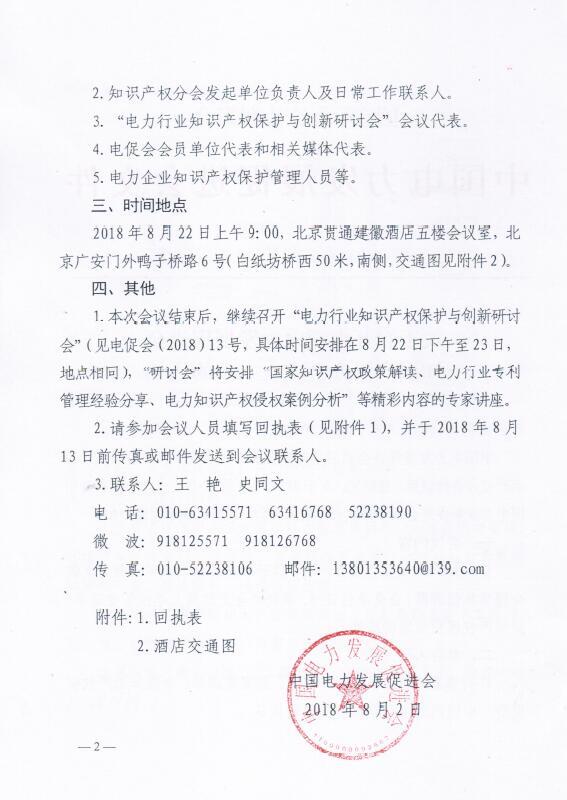 關(guān)于召開中國電力發(fā)展促進會知識產(chǎn)權(quán)分會成立大會的通知