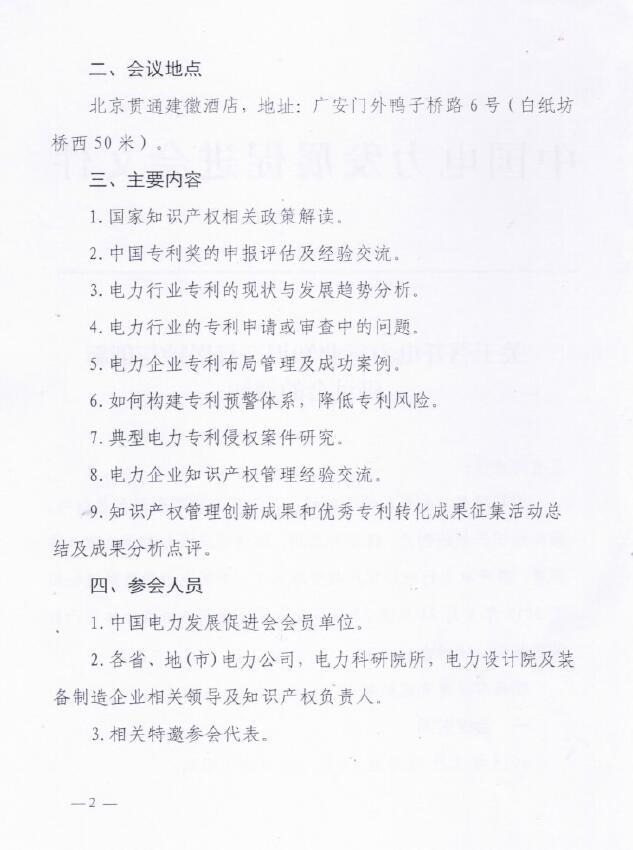 關(guān)于召開(kāi)電力行業(yè)知識(shí)產(chǎn)權(quán)保護(hù)與創(chuàng)新研討會(huì)的通知