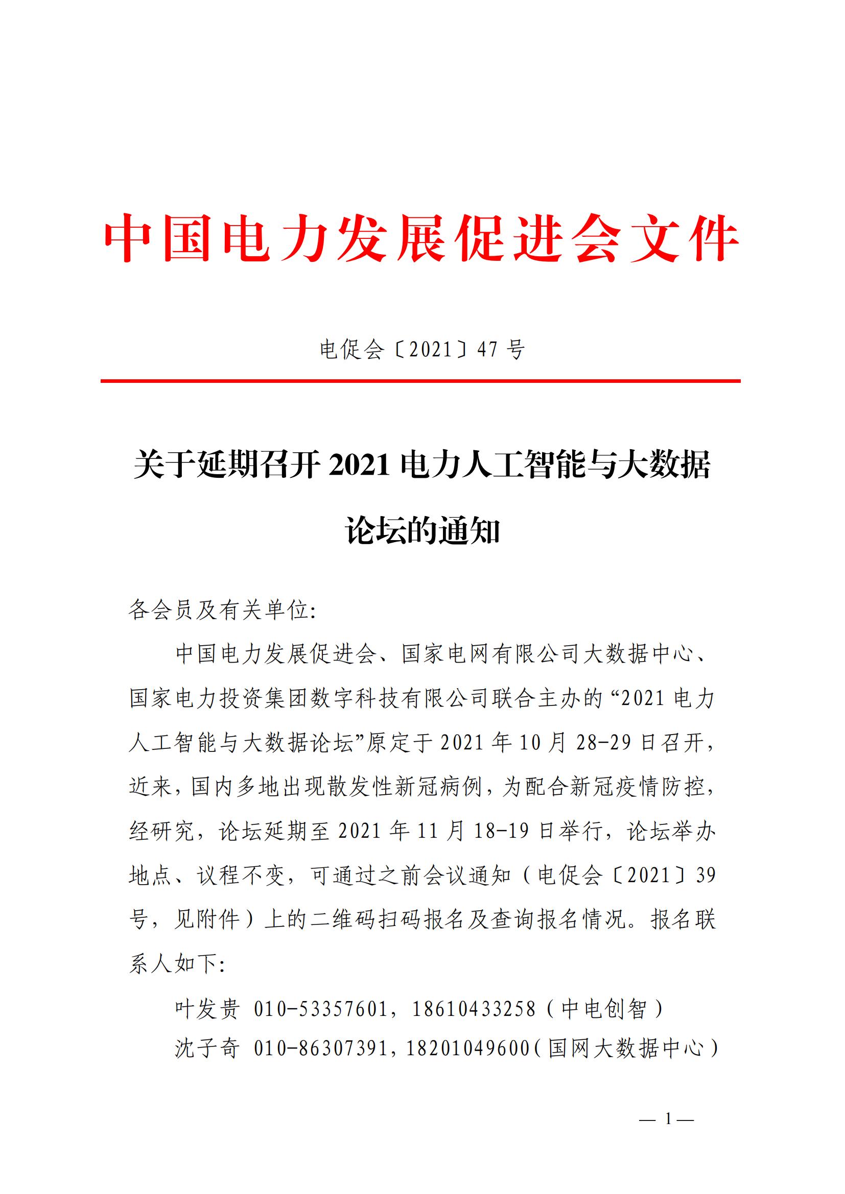 關于延期召開2021電力人工智能與大數據論壇的通知