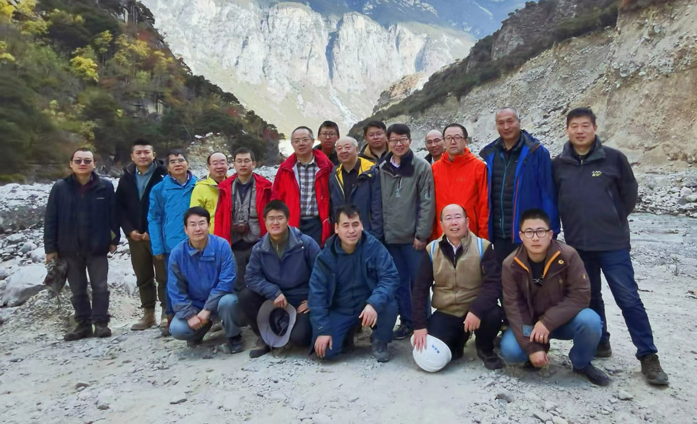 ▲2021年周恒(二排右四)在西藏易貢藏布忠玉水電站現(xiàn)場踏勘
