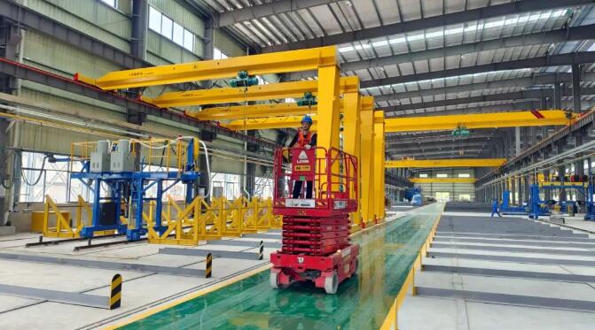 二期項(xiàng)目是建筑集團(tuán)自行投資、建設(shè)、運(yùn)營的專業(yè)化鋼結(jié)構(gòu)加工制造項(xiàng)目,占地61.3畝,總建筑面積約2萬平方米,新建鋼結(jié)構(gòu)生產(chǎn)線2條、新能源結(jié)構(gòu)生產(chǎn)線2條、噴涂車間1座,新增產(chǎn)能2.5萬噸。“二期項(xiàng)目于2023年9月動(dòng)工,2023年12月29日主體鋼架開吊,2024年5月25日如期建成,歷時(shí)9個(gè)月,創(chuàng)造了項(xiàng)目建設(shè)的‘至精速度’。”淮南至精鋼結(jié)構(gòu)分公司經(jīng)理田偉告訴記者,為節(jié)約投資成本、提高建設(shè)效率,項(xiàng)目充分利用建筑集團(tuán)擁有的投資、設(shè)計(jì)、建設(shè)、運(yùn)營能力,強(qiáng)化協(xié)同作戰(zhàn),數(shù)智賦能,使建設(shè)的各個(gè)環(huán)節(jié)都能順暢銜接,確保項(xiàng)目快速推進(jìn)。