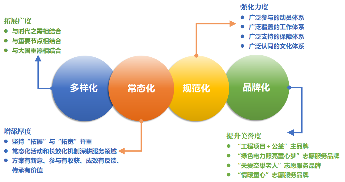 以品牌化提升美譽度。江蘇院志愿服務堅持以品牌化擴大影響力,在實踐中提煉出“工程項目+公益”主品牌和三大子品牌的“1+3”品牌矩陣。聚焦重點工程,創(chuàng)建“綠色電力照亮童心夢”服務品牌;聚焦老年群體,打造“關(guān)愛空巢老人”服務品牌;聚焦少兒群體,沉淀出“情暖童心”服務品牌。