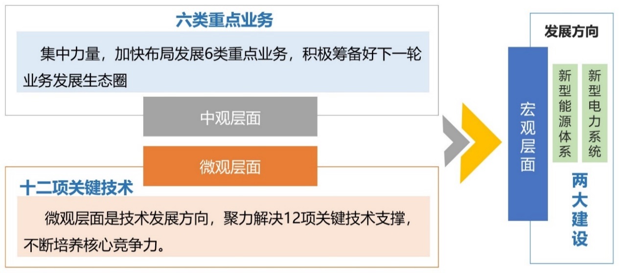 科學(xué)規(guī)劃新質(zhì)生產(chǎn)力發(fā)展方向,制定發(fā)展新質(zhì)生產(chǎn)力的陜西院方案,是保障新質(zhì)生產(chǎn)力發(fā)展的重要前提。陜西院基于自身資源稟賦及發(fā)展優(yōu)勢(shì),從三個(gè)層面系統(tǒng)性提出新質(zhì)生產(chǎn)力業(yè)務(wù)發(fā)展規(guī)劃,制定了發(fā)展新質(zhì)生產(chǎn)力的陜西院方案:宏觀層面是方向指引,要堅(jiān)持立足構(gòu)建新型能源體系與構(gòu)建新型電力系統(tǒng),主動(dòng)履行央企責(zé)任擔(dān)當(dāng);中觀層面是業(yè)務(wù)發(fā)展方向,要集中力量,加快布局發(fā)展6類重點(diǎn)業(yè)務(wù),積極籌備好下一輪業(yè)務(wù)發(fā)展生態(tài)圈;微觀層面是技術(shù)發(fā)展方向,要聚力解決12項(xiàng)關(guān)鍵技術(shù)支撐,不斷培養(yǎng)核心競(jìng)爭(zhēng)力。