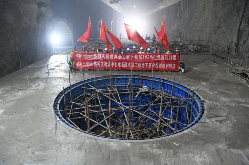 地下泵站布置有12臺離心式水泵機(jī)組,單機(jī)容量4萬千瓦,總裝機(jī)容量48萬千瓦,提水泵站單機(jī)離心泵容量世界最大、提水泵站總裝機(jī)容量世界最大。