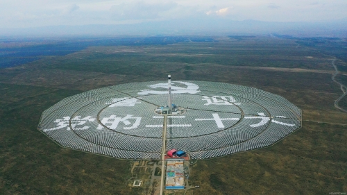 光熱之城上的東方明珠。從海拔3000米的青藏高原塔拉灘龍羊峽眺望,一座高達210米的吸熱塔熠熠閃光。古老的母親河畔,方圓2.12平方公里的“光熱之城”分布著近3萬面20平方米的定日鏡,這里就是青海共和50兆瓦光熱發(fā)電項目。