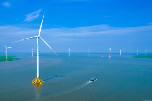 跨越江河,筑夢藍海。一排排風車矗立在壯闊的海面上,迎風起舞,日夜不停地向華東電網輸送綠色“血液”。走進全國首批綠色能源示范縣江蘇如東,“風機森林”舞出亞洲最大海上風電場,壯美“風”景盡收眼底。如東沿海風力資源豐富,是江蘇“海上三峽”的發(fā)祥地,2004年全國首個風電特許權項目落戶如東,中國電建成為如東海上風電場建設的主力軍。