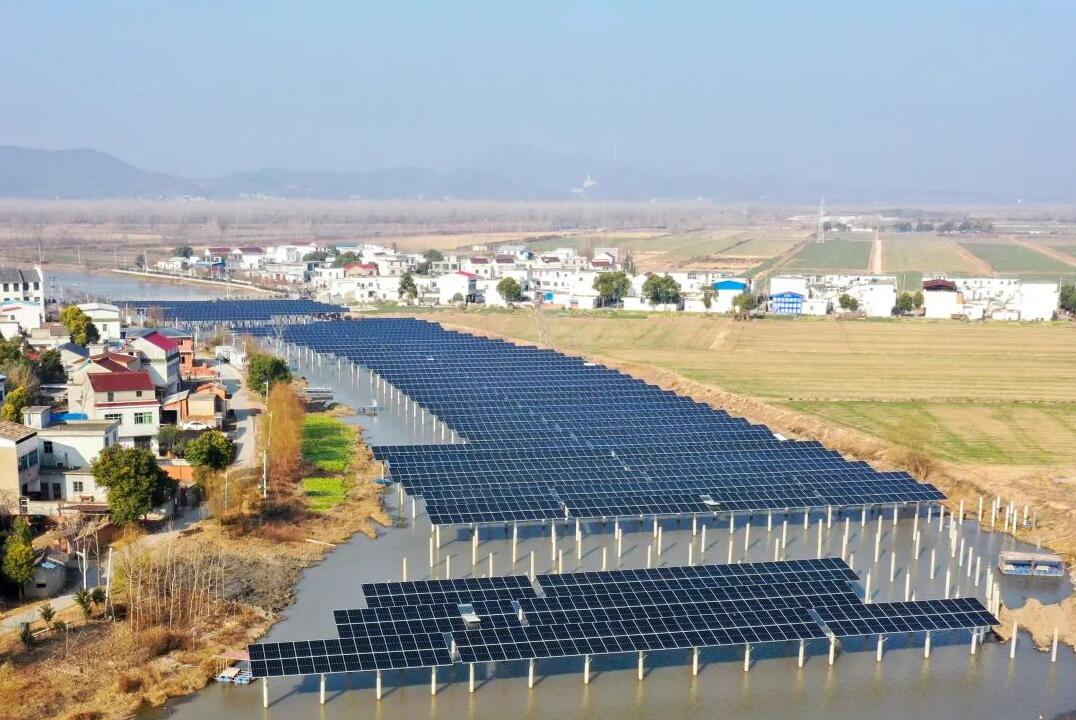 鏡頭調(diào)轉(zhuǎn)至安徽安慶皖河,河水波光粼粼,作業(yè)船穿梭其間,挖掘機(jī)、推土機(jī)、打樁機(jī)發(fā)出陣陣轟鳴,整齊排列的光伏板在春日暖陽(yáng)下等待能量的蓄積,由中國(guó)能建安徽電建二公司承建的安徽安慶皖河200兆瓦光伏發(fā)電項(xiàng)目在春日陽(yáng)光的照射下,正煥發(fā)出勃勃生機(jī)。