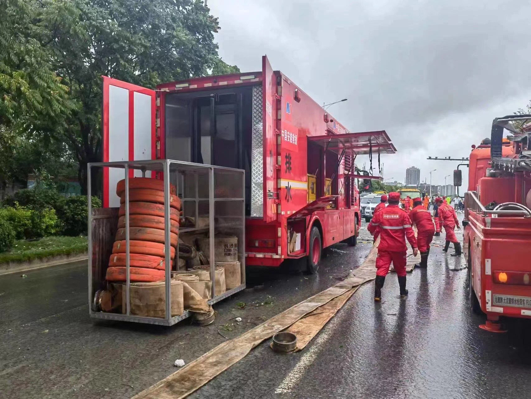 7月29日,泉州市內(nèi)持續(xù)暴雨,城市多處出現(xiàn)內(nèi)澇,部分街道、商鋪、車輛被水浸泡,積水最深處達1米。泉州市火車站附近重要通行主干道阻塞,給群眾出行帶來極大困擾,同時也存在較大的安全隱患。接到指令后,中國安能廈門公司出動救援員16人,攜“龍吸水”1臺、排水車1臺,到達積水區(qū)域開展排水作業(yè)。上午10時,在晉江市結(jié)束城市道路清障任務(wù)的救援隊員也轉(zhuǎn)戰(zhàn)到達泉州市豐澤區(qū)南北大道附近,增援內(nèi)澇排險救援戰(zhàn)斗。截至29日16時30分,累計抽排水約5000立方米,險情成功解除。